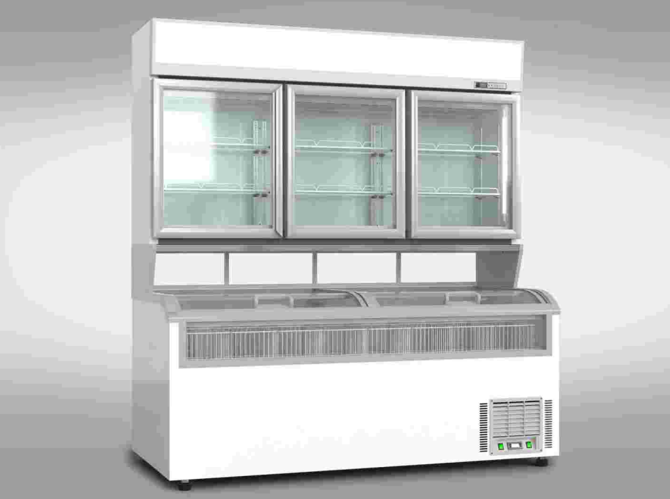 It features an adjustable design that can be configured as upper refrigeration + lower freezing or full freezing. This product is highly favored by chain convenience stores and large supermarkets for its convenient design, space-saving advantage, and excellent display performance